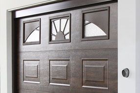 Встроенные окна в гаражных воротах помогают сократить расходы на электроэнергию и позволяют использовать естественное освещение. Более того, такое оформление ворот придает им оригинальный вид.